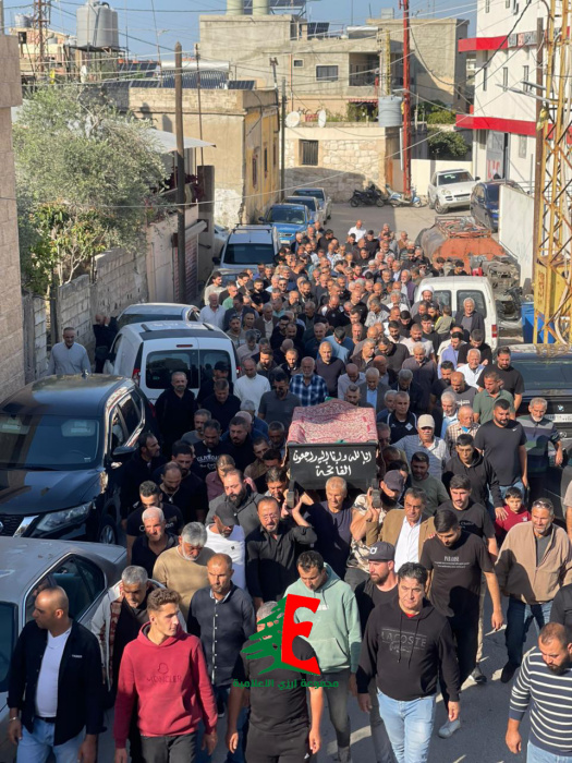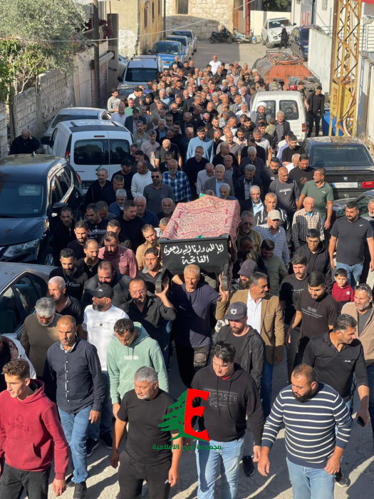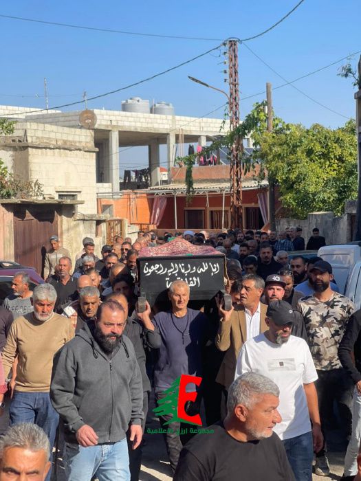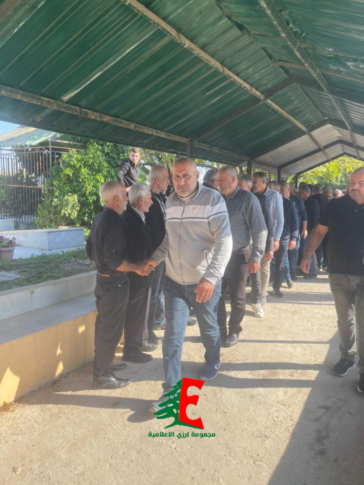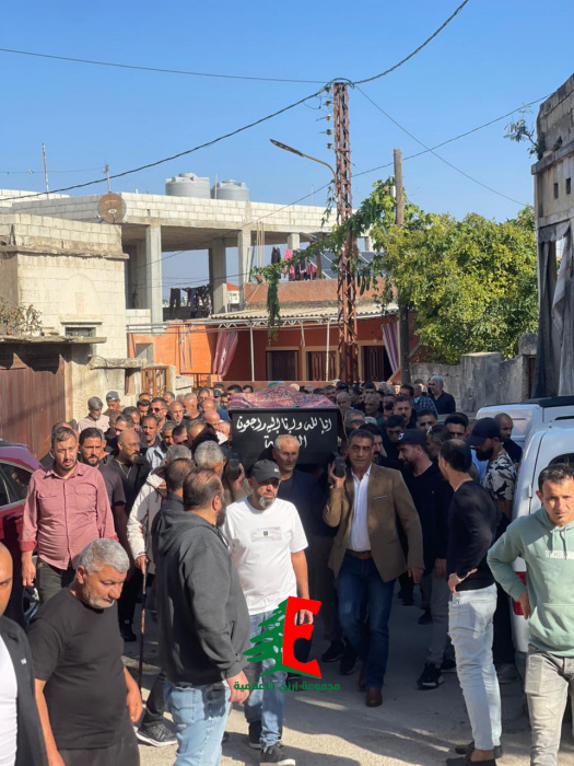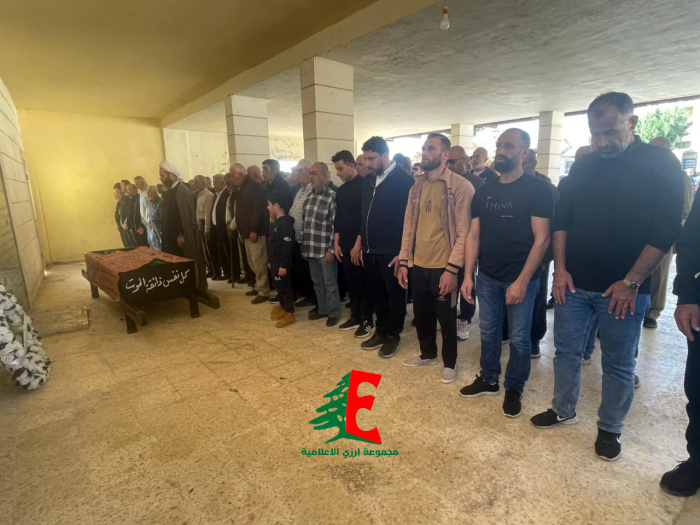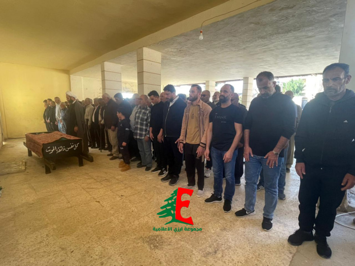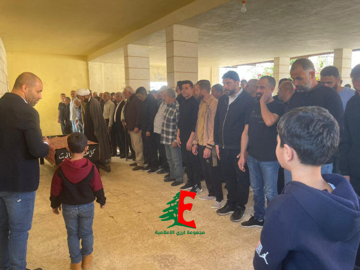 حيث حُمِل النعش على الاكف وصولا إلى جبانة البلدة حيث أم الصلاة على جثمانه إمام بلدة ارزي فضيلة الشيخ علي متيرك قبل أن يوارى الجثمان الثرى