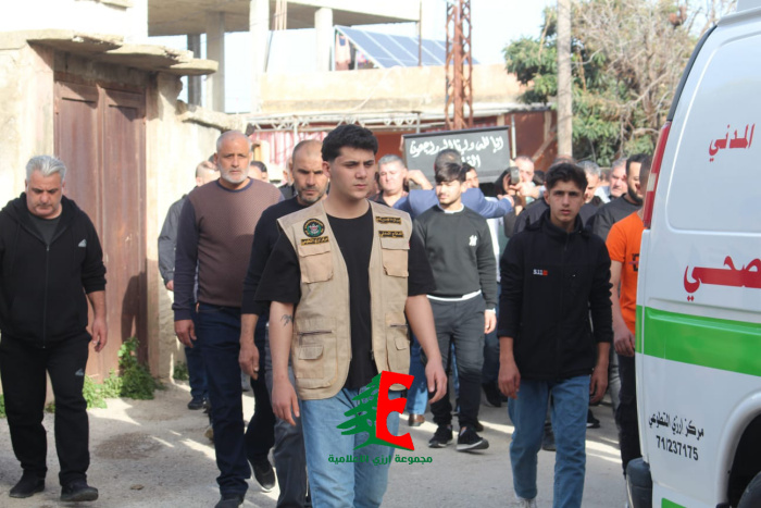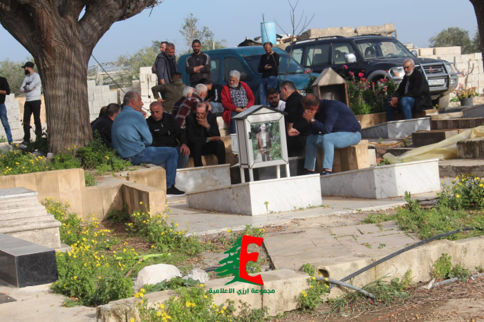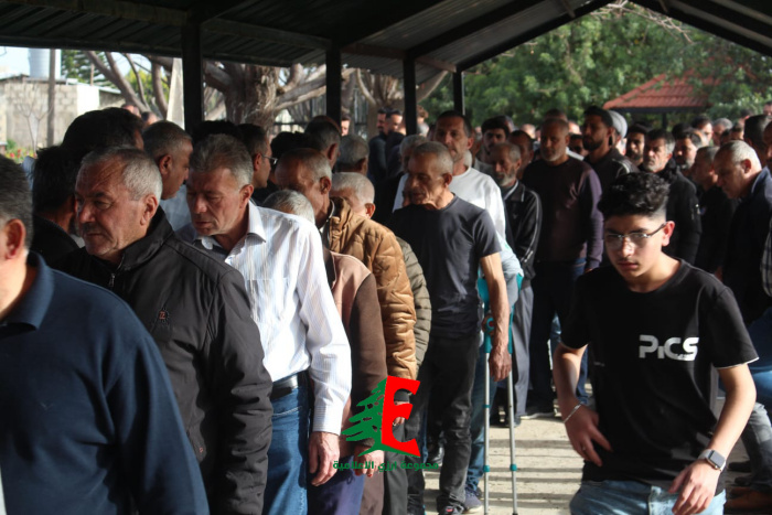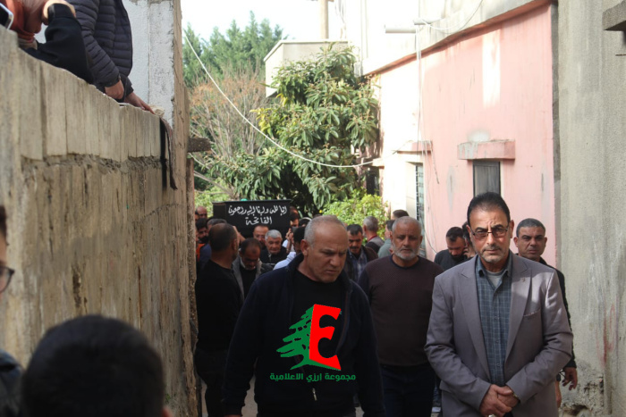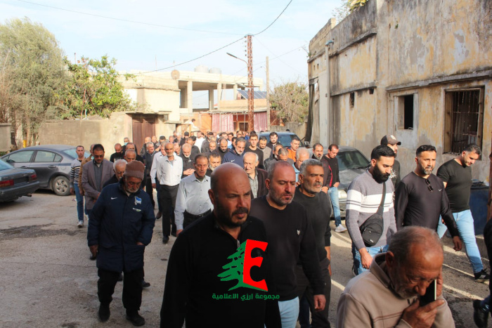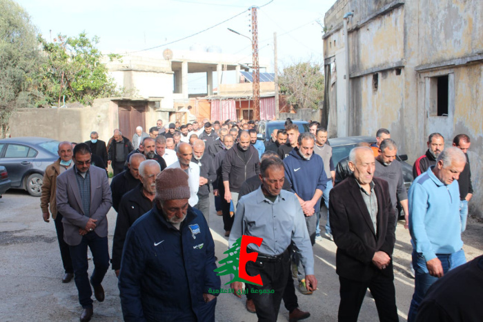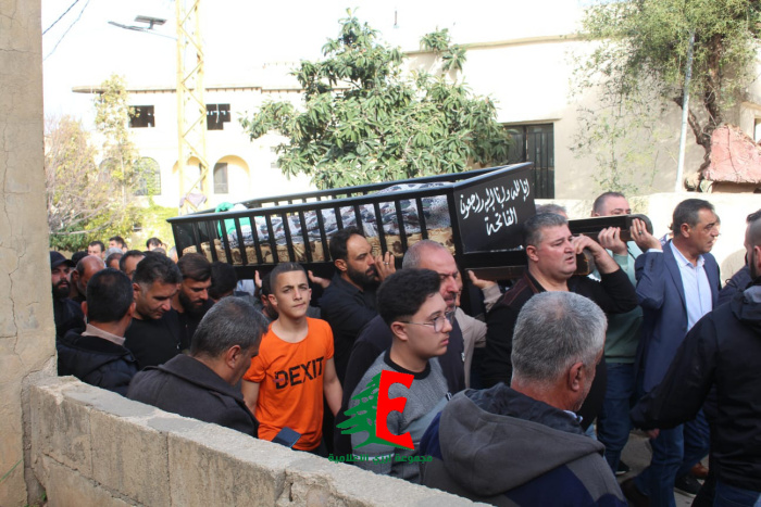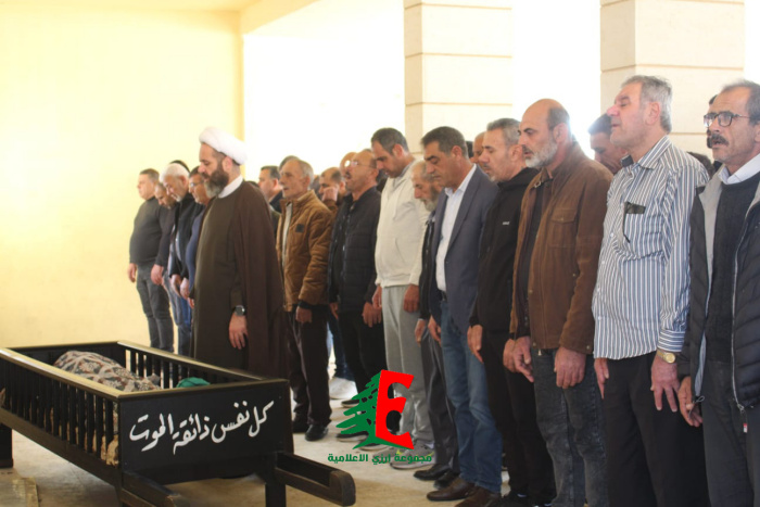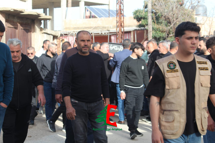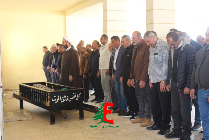 حيث حمل النعش على الاكف وصولا الى الجبانة حيث أم الصلاة على جثمانه إمام بلدة ارزي فضيلة الشيخ علي متيرك قبل أن يوارى الجثمان الثرى