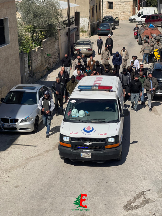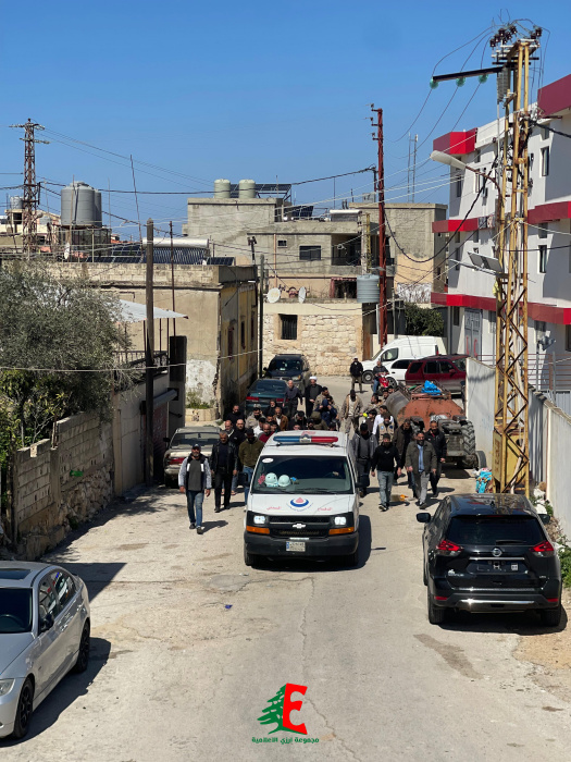 حيث سارت سيارة اسعاف الهيئة الصحية الإسلامية بالنعش الى جبانة البلدة حيث أم الصلاة على جثمانها الطاهر إمام بلدة ارزي فضيلة الشيخ علي متيرك قبل أن يوارى الجثمان الثرى